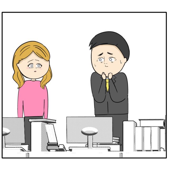 でっちあげのセクハラとパワハラ被害証言で良し男さんを陥れようとしたものの嘘がバレて異動処分が下された後輩女性ふり子さん。しかし、処分が下った後もふり子さんは自分は被害者だと部長に長文の手紙を書いたり、良し男さんに長文メールを送ります。ふり子さんからのメールに良し男さんが怯えていると、後輩の村上くんからふり子さんが良し男さんのロッカーを睨みつけていたという報告メールが来て良し男さんはますます怯えます。