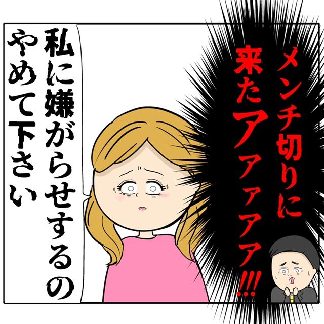 「メンチ切りに来たアァァァァ!!!」と思い身構える良し男さん。しかし、ふり子さんは「私に嫌がらせするのやめて下さい」と予想外なことを言いました。