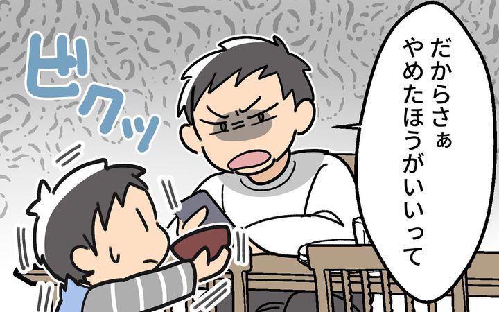 ・おかしいのはお前のほうだろ。子どもに気を使わせてなにやってんだよ。こんなことで男の面子とかいつの時代を生きてんだ。