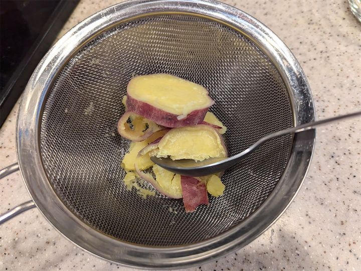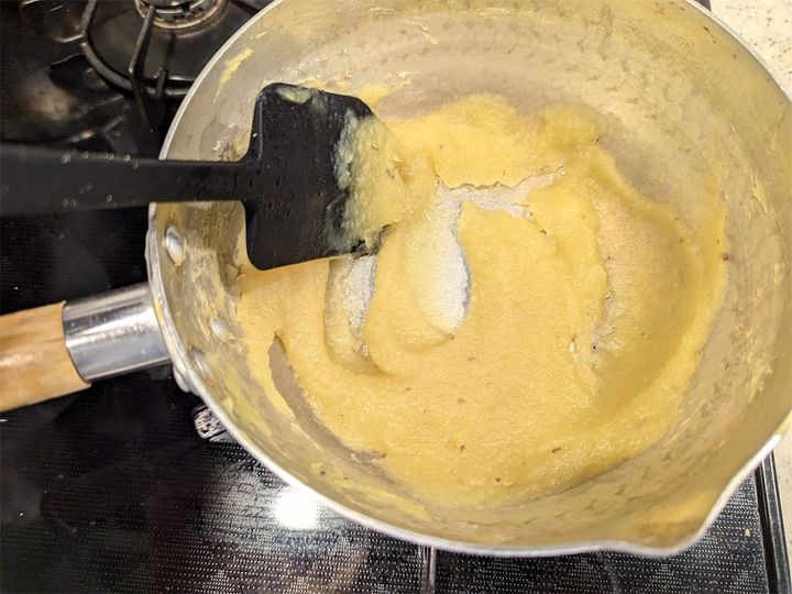 ちなみに、さつまいもを裏ごしして水でのばすのが面倒という方は、ミキサーなどを使ってペースト状にしても良いかもしれません。