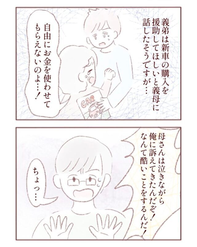 「車買うから援助して」年金暮らしの義母にせびる義弟と貢ぐ義母[6-1]|ママ広場マンガ