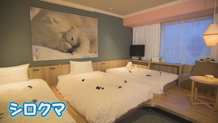 旭山動物園の人気者、シロクマをテーマにした部屋もあり、いつまでも非日常を楽しめるホテルです。