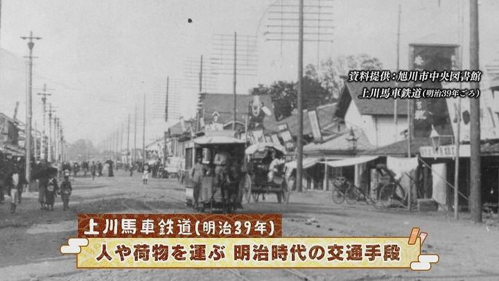 札幌よりも早く、馬車鉄道が開通しました。当時の旭川の発展ぶりがうかがえます。