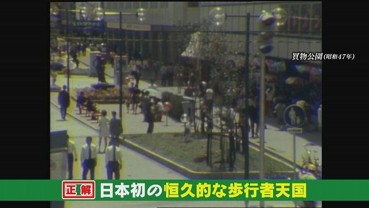 正解は…「買物公園は、日本で初めて、恒久的な歩行者天国になった場所」です。