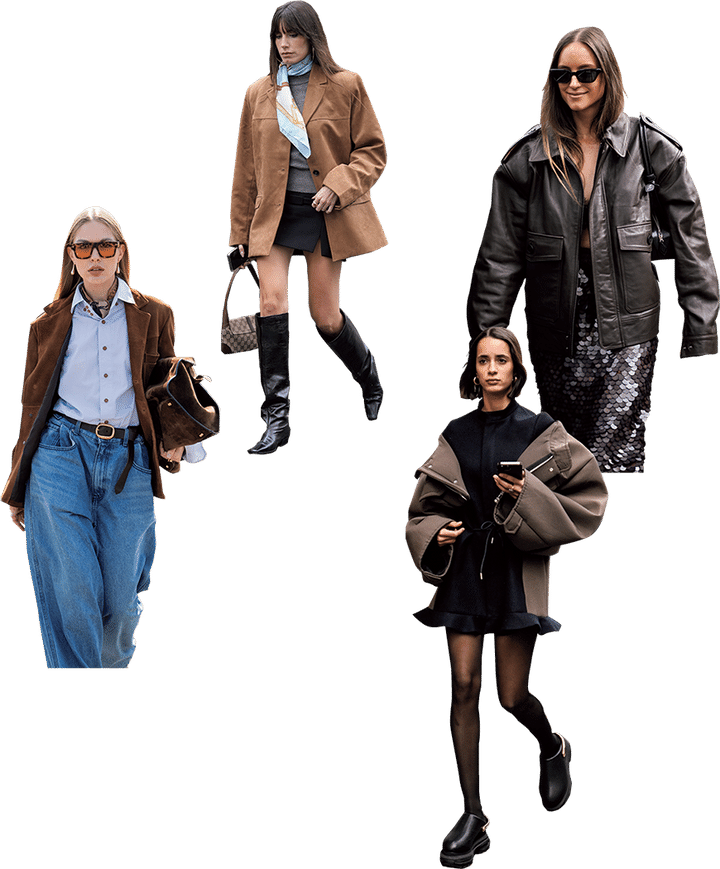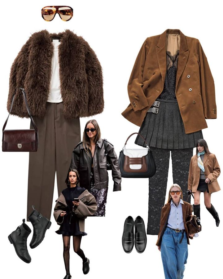 「服でブラウンを取り入れるなら、まずは着こなしの印象を左右する大きなカギを握るアウターで」と百々さん。その言葉のとおり、海外のファッショニスタたちも、今季はこぞってブラウンのアウターをチョイス。それもオーバーサイズジャケット、ムートンコート、レザーブルゾンなど、こなれた洒落感を出してくれるアイテムが人気。秋冬の必須アイテムでブラウンを取り入れて、コーデを一気に最旬にアップデートしよう!
