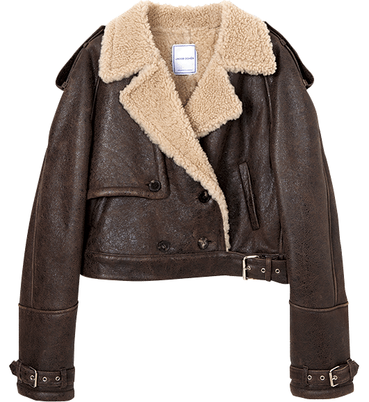 軽やかなクロップド丈がいい感じのムートンジャケット。¥631,400(ヤコブ コーエン/ヤコブ コーエン 東京ミッドタウン店)