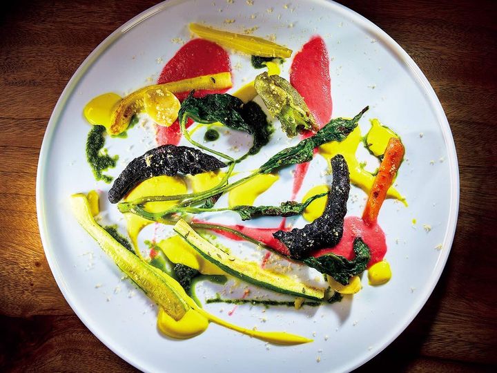 竹墨衣に包まれたズッキーニやガーリックオイルで炭火焼きした間引きにんじんは、メインディッシュと言われても納得の食べ心地だ。
