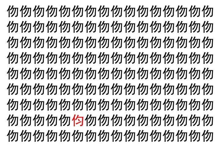 2. 【脳トレ】「伆」の中に紛れて1つ違う文字がある!?あなたは何秒で探し出せるかな??【違う文字を探せ!】