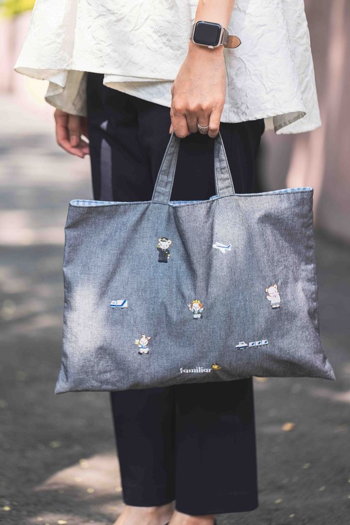 \公立小学校と私立幼稚園の姉弟ママ/ ファミちゃん刺繍の【サブバッグ】は 大人っぽく持てます