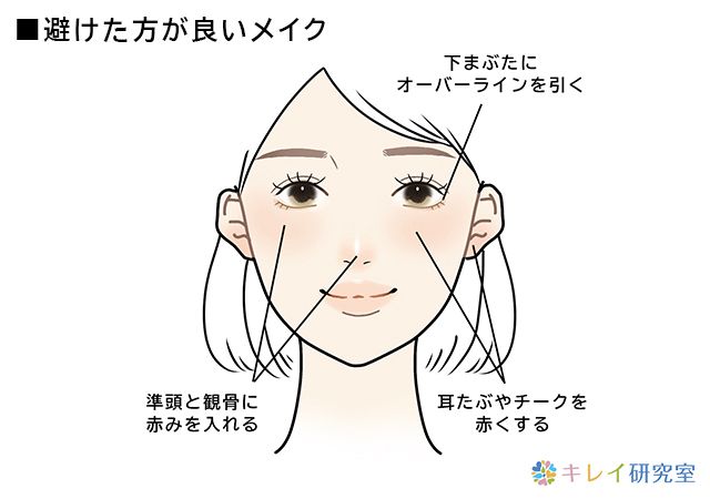 NGメイク3:準頭と観骨(頬骨)の赤み