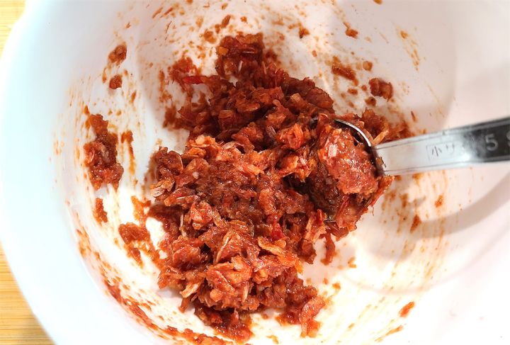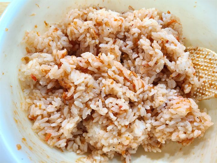 3. 【空前の世界的おにぎりブーム】か・ら・の…今度中華風♡むきエビ×桜海老で「えびチリマヨおにぎり」作ろう