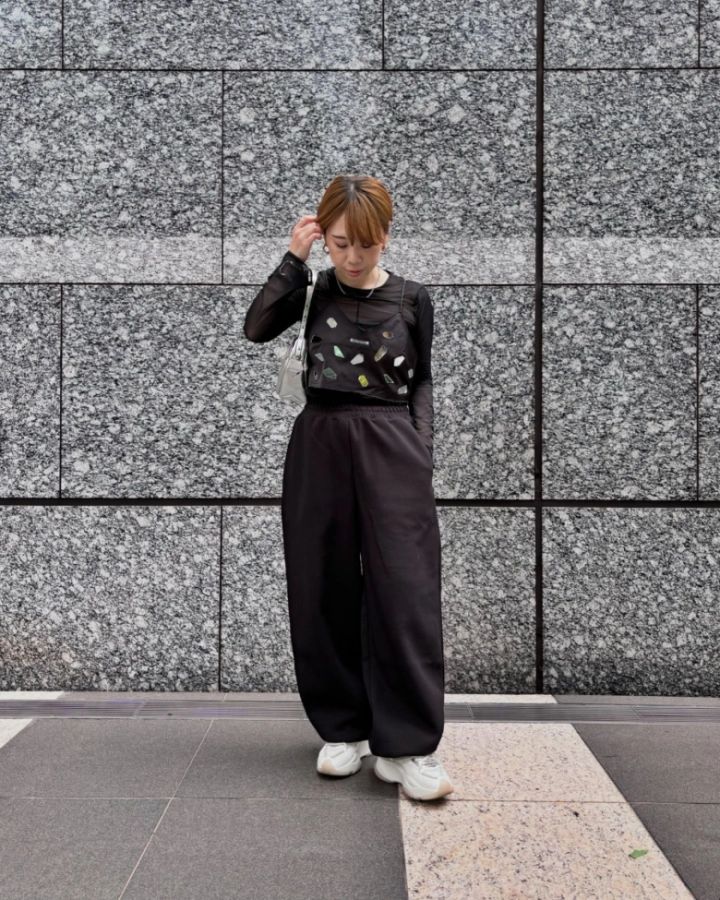 ここからは、「スウェットワイドパンツ」を使用したコーデをチェックしていきましょう♪