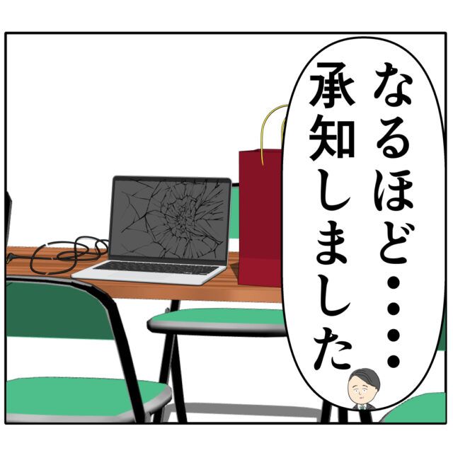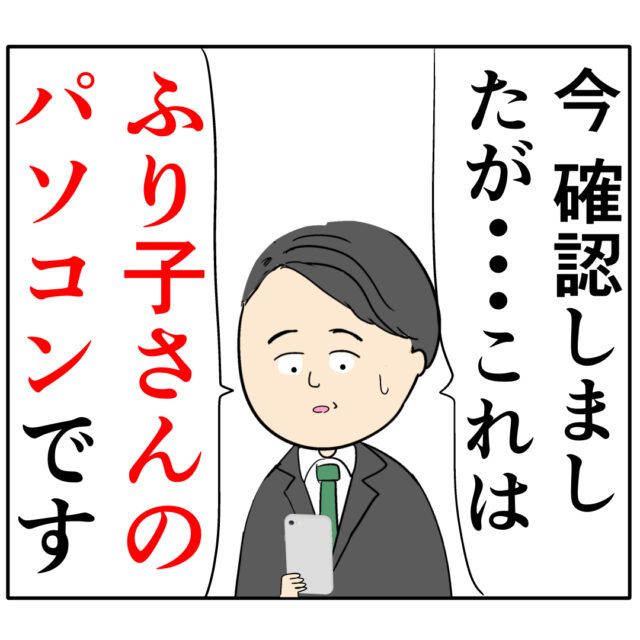 「今確認しましたが・・・これはふり子さんのパソコンです」課長が破壊されたパソコンの持ち主を確認したところ、ふり子さんのパソコンだと判明。