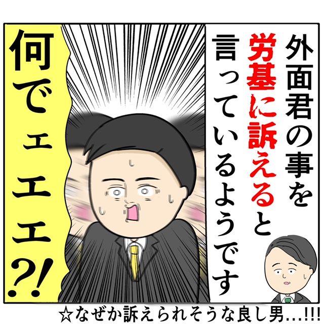 さらに、「外面君の事を労基に訴えると言っているようです」と課長に告げられ「何でェエエ!?」と思いもよらないふり子さんの言動に驚愕する良し男さん。ハラスメント疑惑が晴れたと思ったら、今度はなぜか労働基準監督署に訴えられそうになってしまいました。