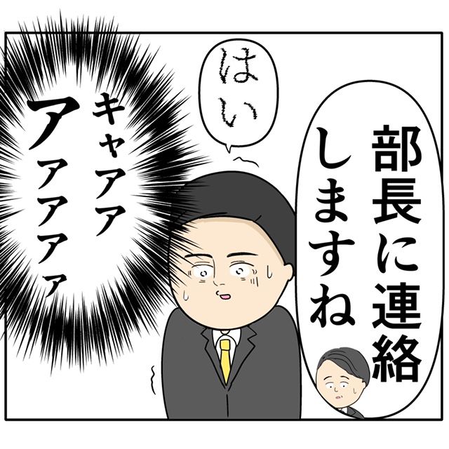 「部長に連絡しますね」という課長の言葉に「はい」となんとか返答した良し男さんですが、予想もしていなかった恐ろしい展開に内心は「キャアァァァァァ」と悲鳴を上げていました。