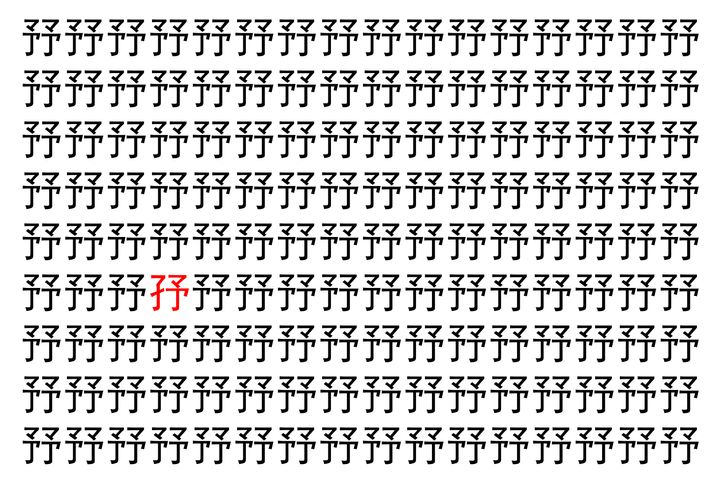【脳トレ】「㐨」の中に紛れて1つ違う文字がある!?あなたは何秒で探し出せるかな??【違う文字を探せ!】