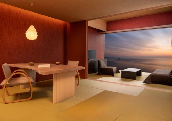 地域らしさあふれる「ご当地部屋」。全ての客室からは別府湾を望むことができ、海を絵画のように楽しめる「ピクチャーウィンドウ」が特徴です。