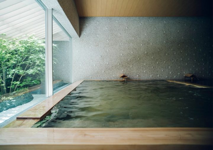 庭園に咲き誇る四季折々の植物を眺めることができる露天風呂と、内風呂を備えた大浴場。内風呂は、ヒノキの温もりとご当地の磁器「臼杵焼き」の壁が特徴で、源泉かけ流しの「あつ湯」と、温泉成分を身体に浸透させるための「ぬる湯」の2つの湯船があります。さまざまな泉質の湯めぐりをした後、仕上げの湯としてのんびり入浴するのもオススメです。