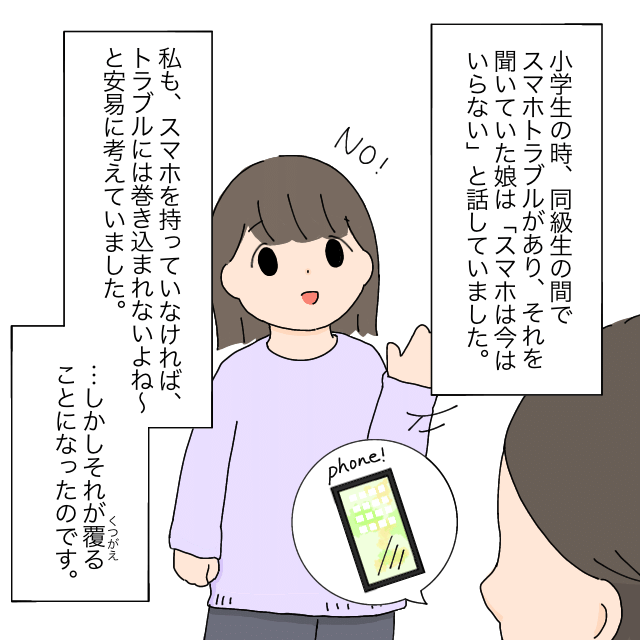 今回は、スマホを持っていないのにも関わらずSNSトラブルに巻き込まれてしまった女の子のお話です。