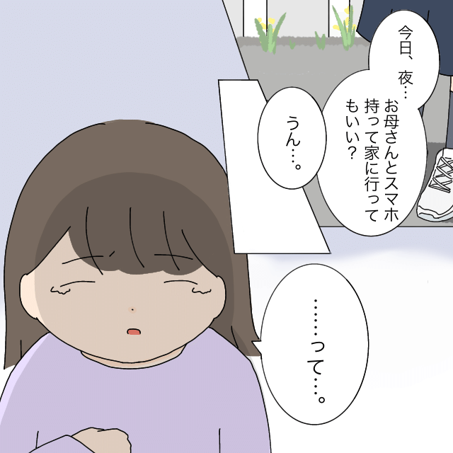 トラブルの予感がしたアキちゃんは「今日、夜・・・お母さんとスマホを持って行ってもいい?」とハナちゃんと後で会う約束をしました。