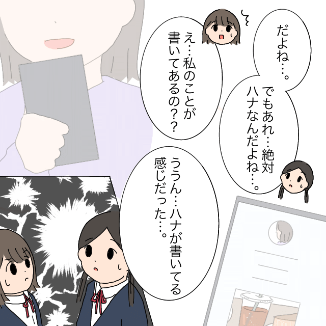 ハナちゃんは「え・・私のことが書いてあるの?」と聞き返すと「ううん・・・ハナが書いていた感じだった・・・」と誰かがハナちゃんになりすましているようでした。
