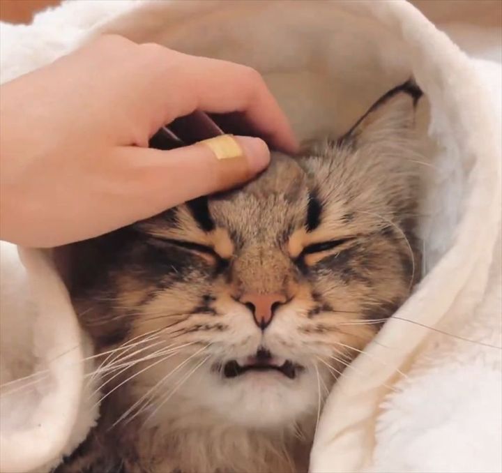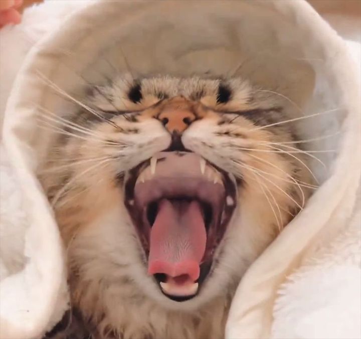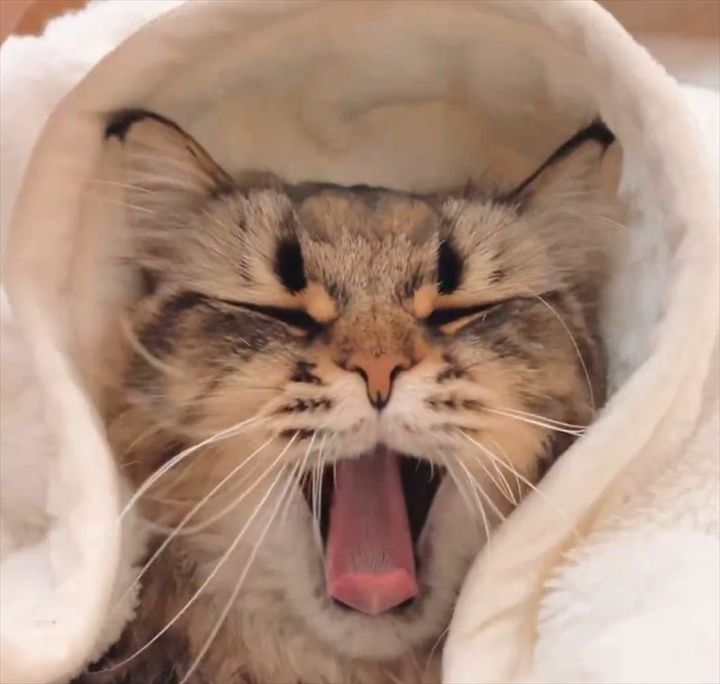 頭をなでると大きなあくびをするネコ。 まるで、あくびのスイッチが頭にあるような様子が反響を呼んでいます!