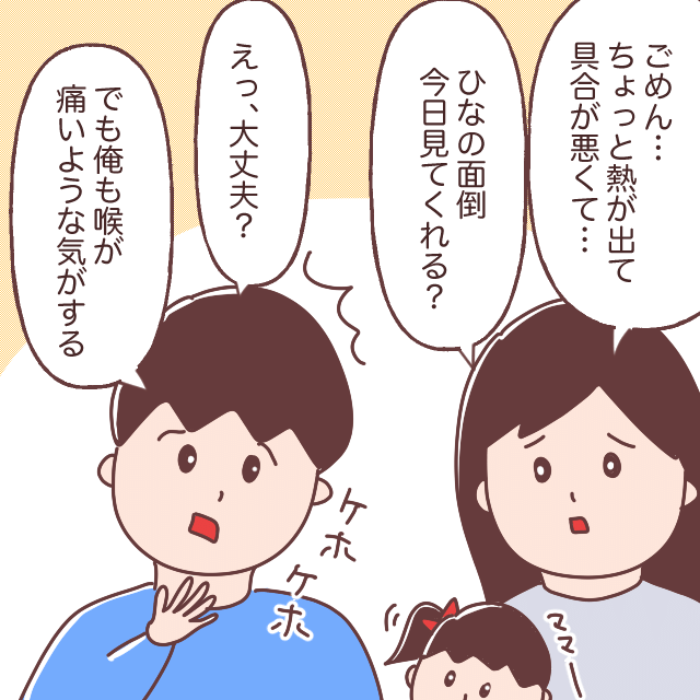 ですがパパさんは「えっ、大丈夫?でも俺も喉が痛いような気がする」と言い出しました。