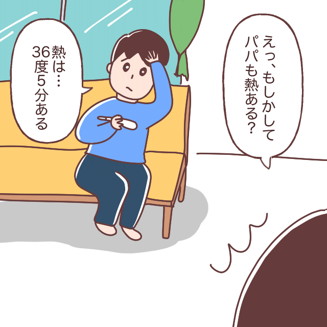 パパさんが熱を測ると「熱は・・・36度5分ある」と具合悪そうに言ってきましたがいたって平熱でした。