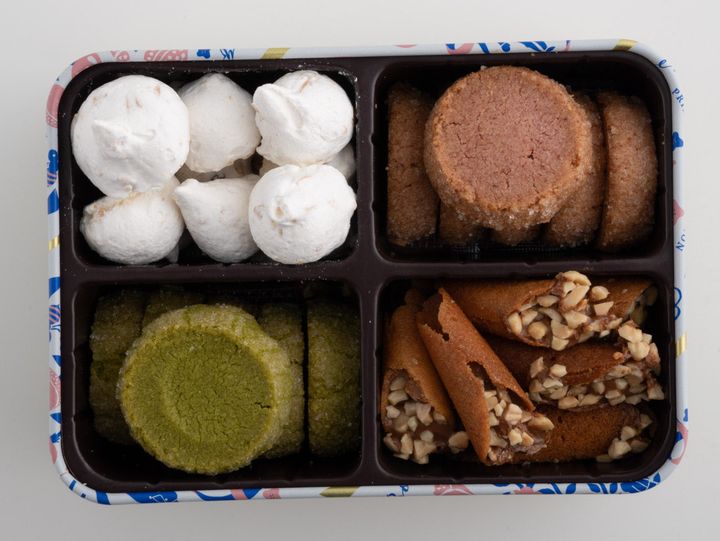 煎茶やレモン、フランボワーズなど個性豊かな4種入り。ぜひ試してほしいのが煎茶風味のクッキー(緑)。スッキリとした味で、緑茶によく合うんです。