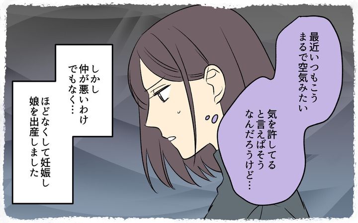 また別の日も、妻がまだ起きているのに夫が「もう寝るから」と部屋の電気をさっさと消されてしまいます。悪気が無いため直す気もない夫。仲が悪いわけではないけれど、妻は自分は空気のように扱われていることにモヤモヤします。ほどなくして、妊娠し出産したのですが…。