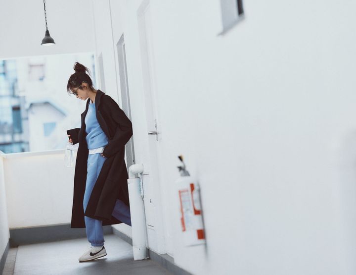 冬コートを味方に、新しいスウェットスタイルにトライしてみて!