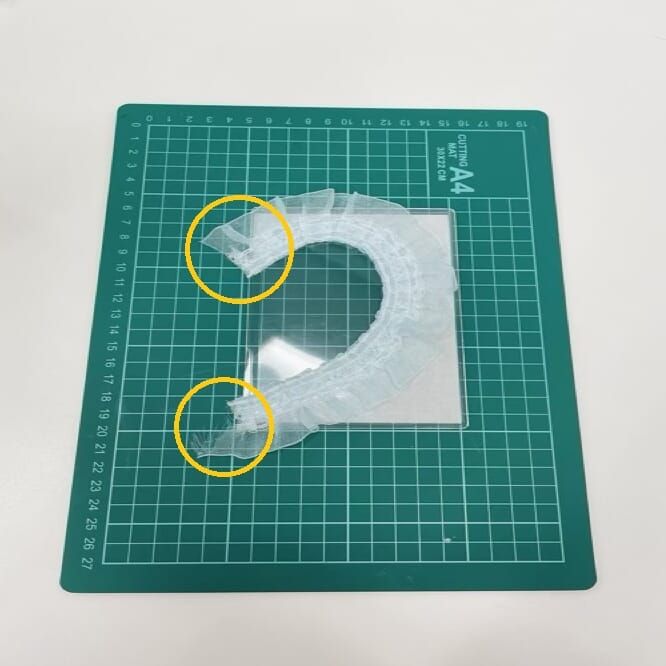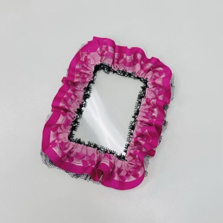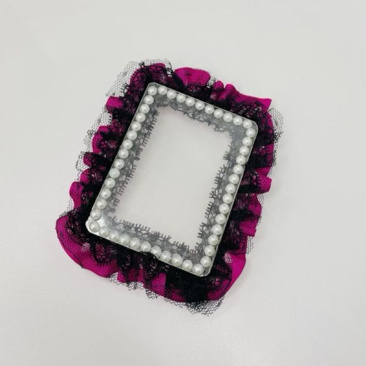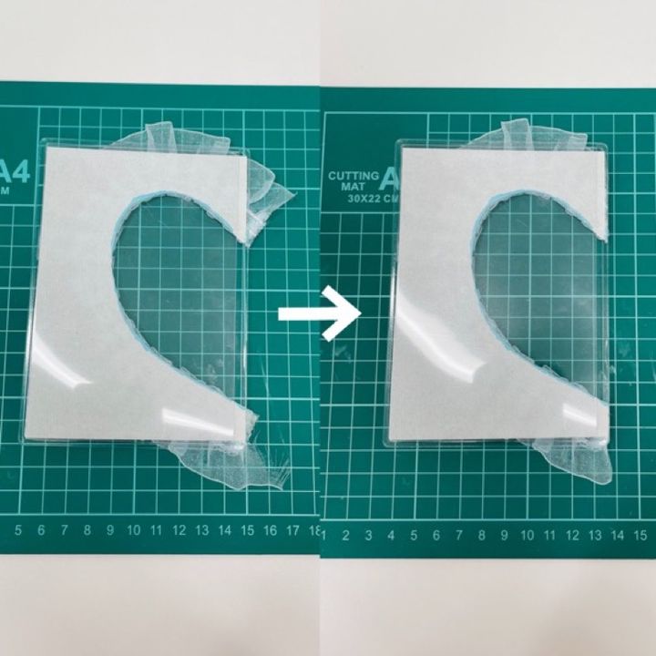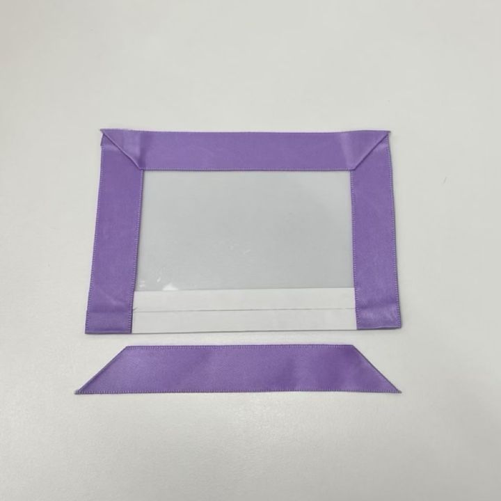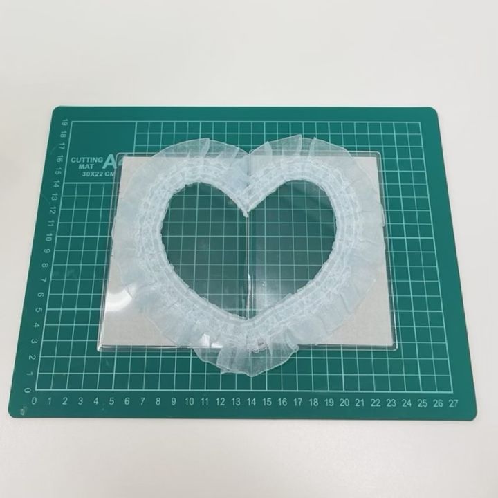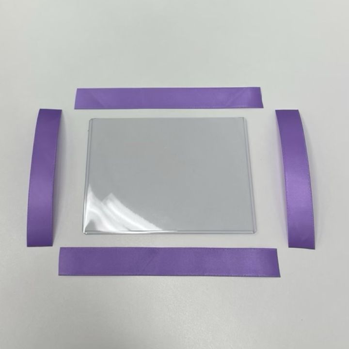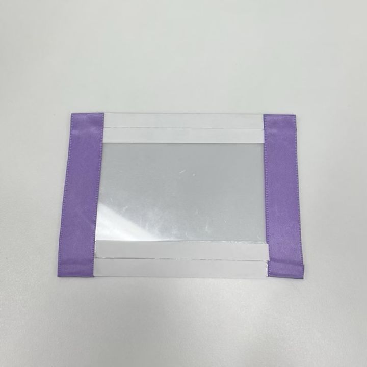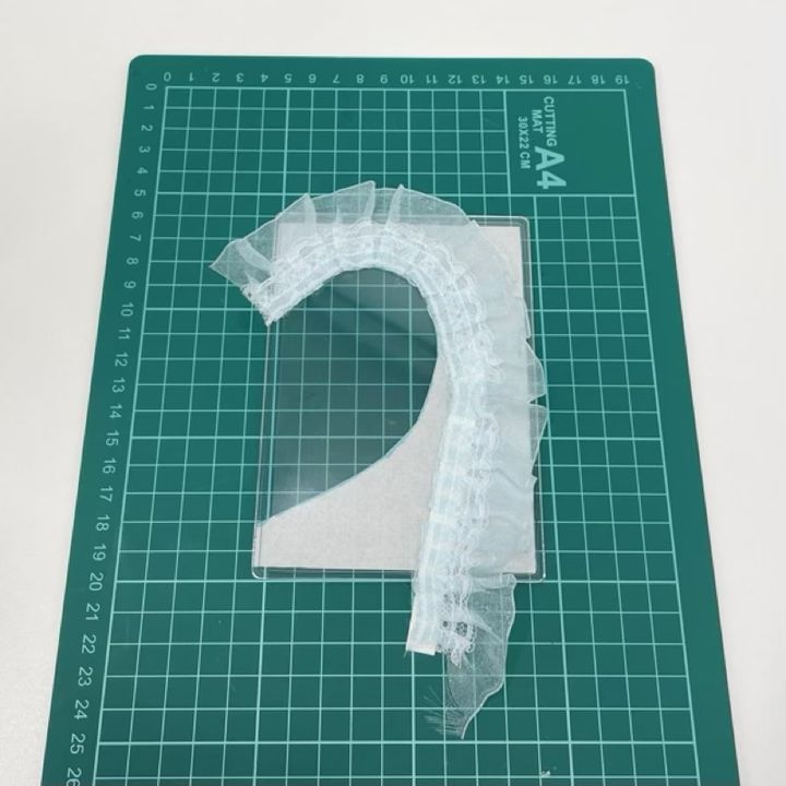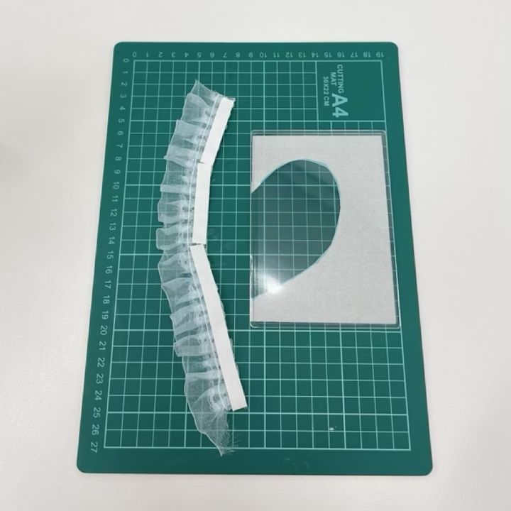 もう1枚の硬質ケースにも同様にフリルリボンを貼り付け、2枚並べて形を確認します。