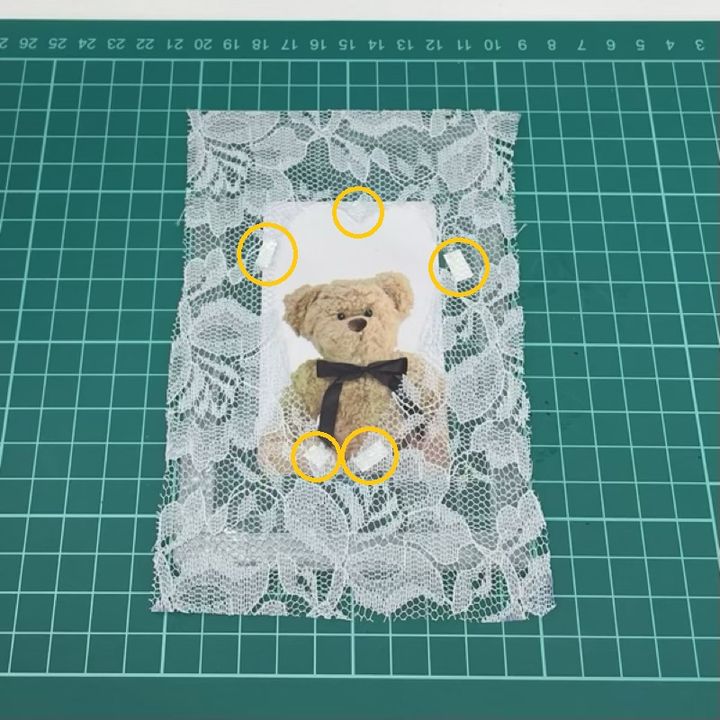 レースの縁は後でデコるので、少しずれても隠せます。