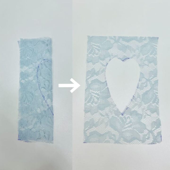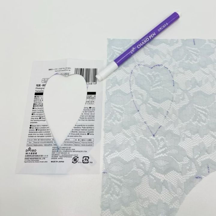 レースに型紙を置き、切り抜くハート部分をチャコペンでなぞります。