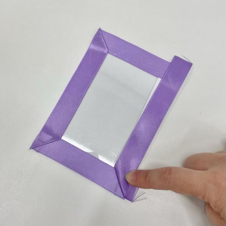 リボンの両端にも両面テープを貼って折り返し、硬質ケースの幅に長さを合わせてください。