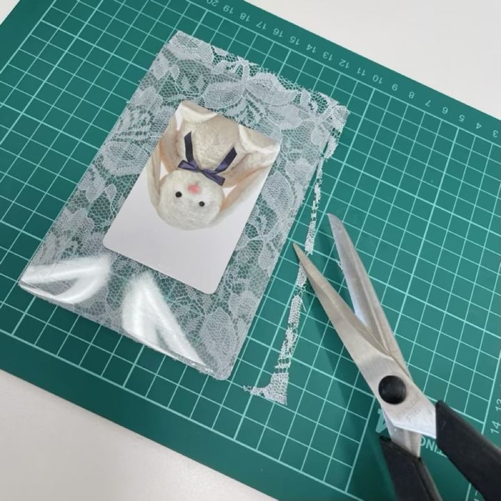 硬質ケースに沿って余分なレースをカットします。