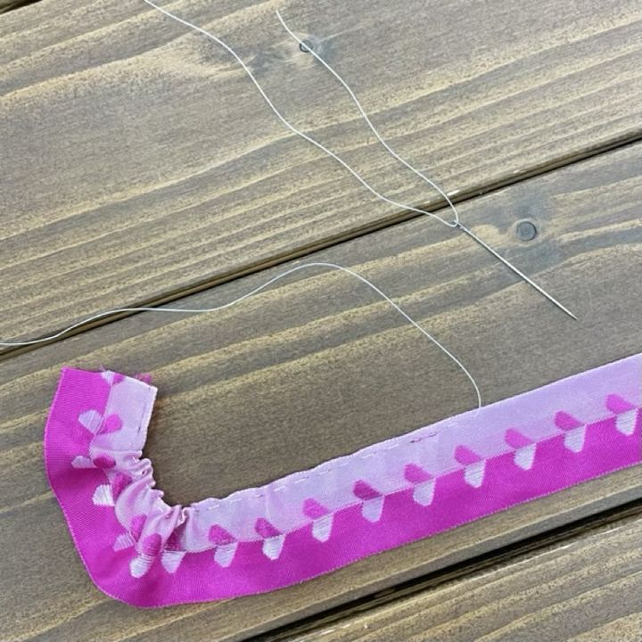 針と糸を用意し、リボンの端をなみ縫いします。
