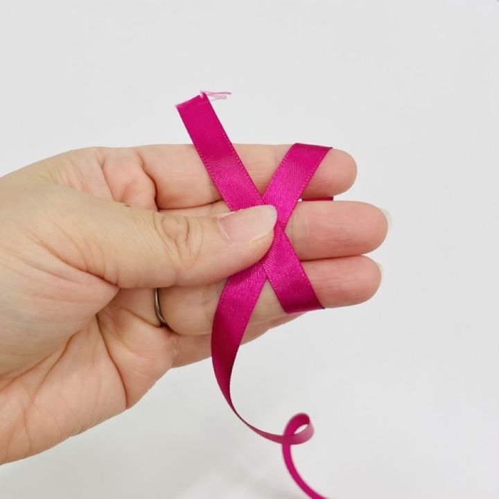 リボンを人差し指にかけて指周りに1周ぐるっと巻きます。