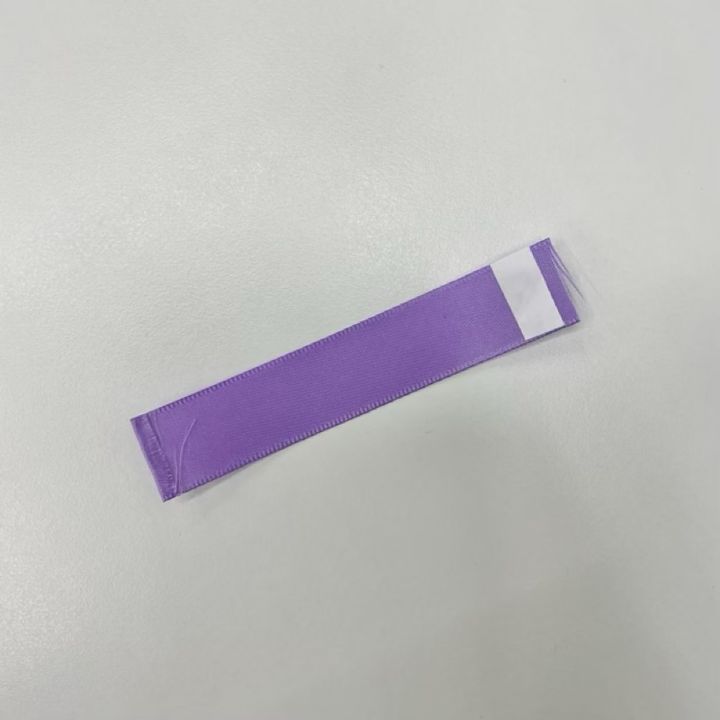 付けた折り目に沿ってリボンの裏に両面テープを貼り、接着します。