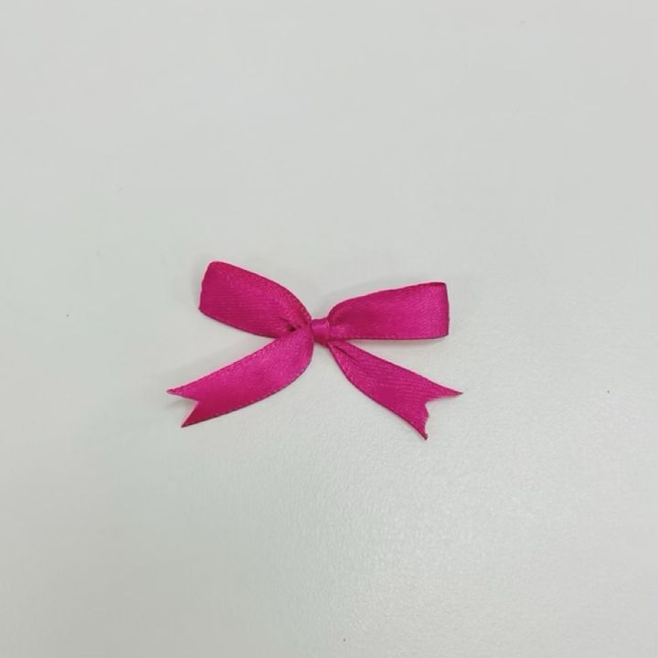 締めて形を整え、余分なリボンをカットすれば、縫わないリボン結びの完成です。