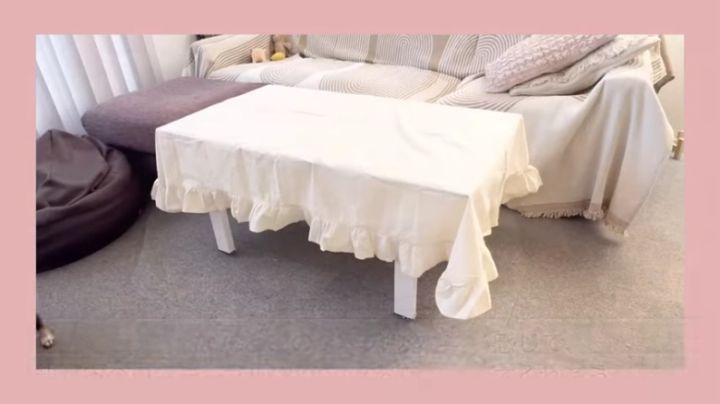 汚れが目立ちやすいガラス天板のローテーブル(約90×50cm)にもピッタリ!裾がフリルでおしゃれな上、食べこぼしの汚れも軽減してくれそうです♪