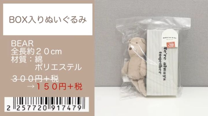 かわいらしいクマのぬいぐるみと、ストライプ柄のボックスがセットになった商品。