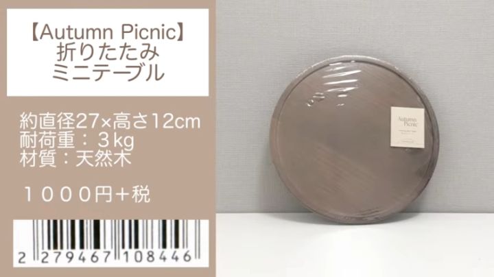 こちらはピクニック用の商品で、持ち運びに便利な折りたたみ式の脚つきミニテーブル。
