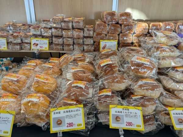 昨年開催した際は、大好評につき午前中で商品が品切れになる日もあったそうです。そこで今年は、十分な種類と数を用意し、商品総合計は、なんと1万4千個!昨年の約2倍の量です!見渡す限りパン!パン!パーーン!ですよ。
