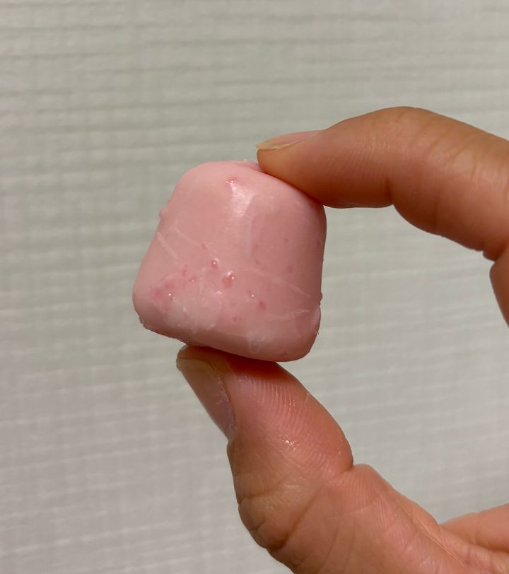 いちご味のチョコでコーティングされており、ピンク色のキャンディ顆粒は小さいながらもカリカリした食感で甘酸っぱく、存在感があります!