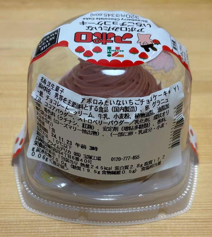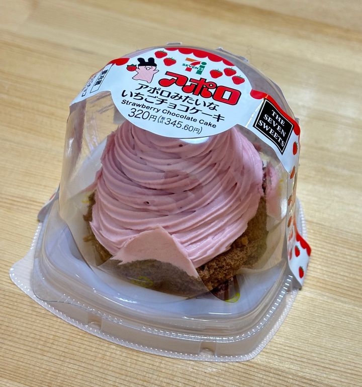 続いては、セブンイレブンのセブンスイーツ、アポロとのコラボ商品である「アポロみたいないちごチョコケーキ」です!