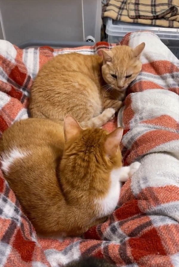 寄り添ってくれているネコたちの姿に、Xでは多くの反響が寄せられていました。
