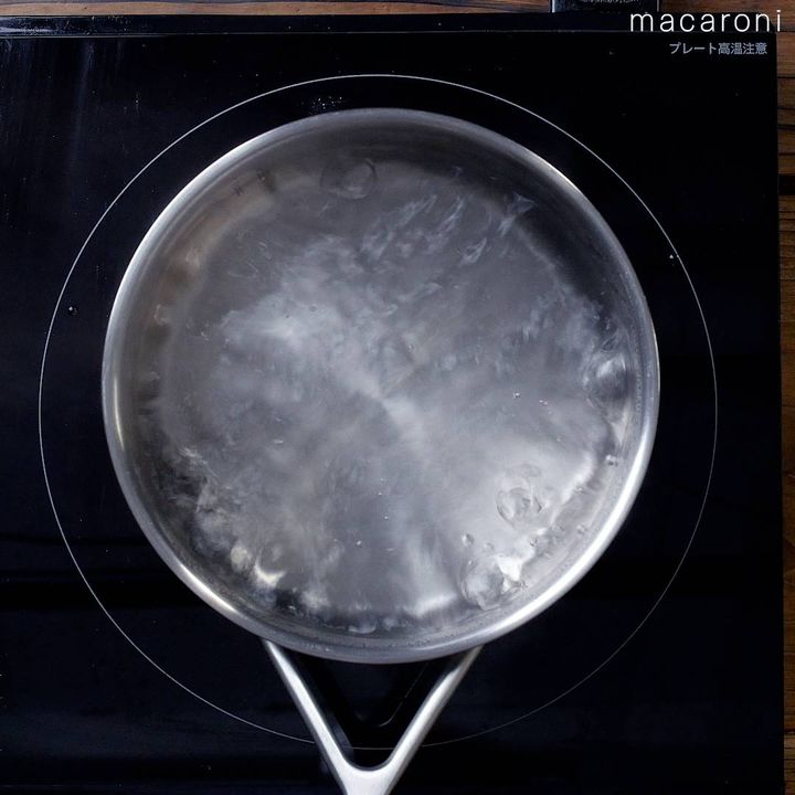 1: 直径16cm位の鍋に水を加えて沸騰させます。