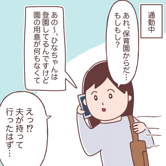 ママさん「えっ!?夫が持って行ったはず・・・」と驚きますが、夫に確認しますと言って一度電話を切りました。