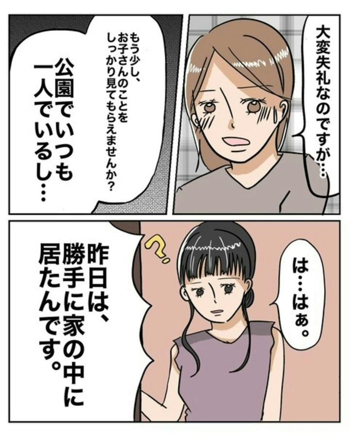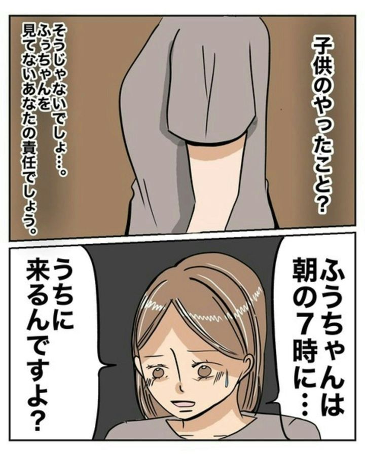 勝手に他人の家の中に入ってきたことに対し、「鍵を閉めてなかったんですか?」と、まったく悪びれる様子がないふぅちゃんのママ。